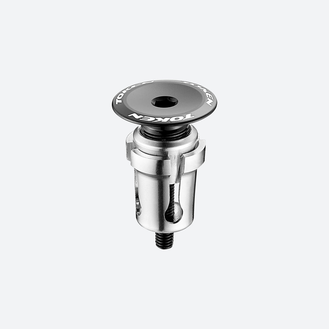 Unlike common expanders the Push-’n-Turn expander’s simple design makes installation quick and easy as the assembly will not rotate inside the steerer. Performance is a highlight here thanks to the specially designed tapered plug and half split expansion collet - secure expansion can be reached with 5-6 N.m of torque. All unnecessary material has been shed off to keep the weight as low as possible. The rubber plug for the top hex hole and anodized parts prevent the expander from sweat corrosion.