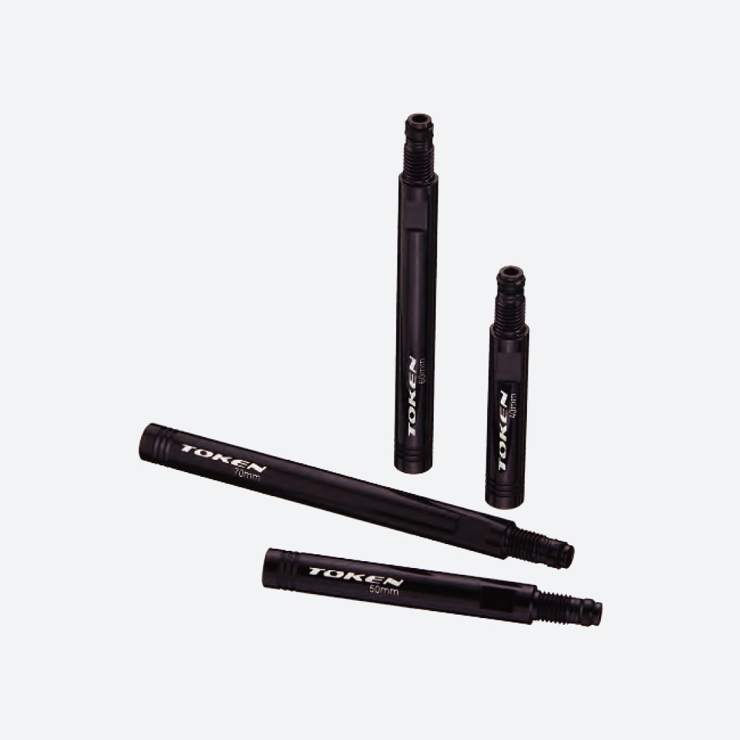 The TOKEN valve extenders are available in a range of sizes so you can get the perfect match for your tubes and rim depth. Simply pull out the valve core on your current valves, install the extenders, reinstall the cores and you can inflate your tyres to the correct pressure with ease. They’re available in any colour you want, as long as it’s black.