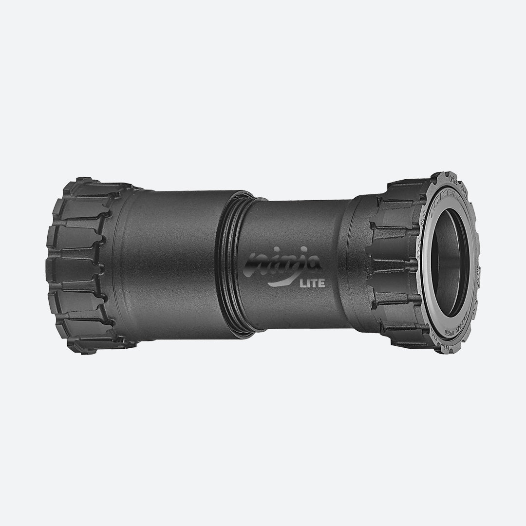 Le boîtier de pédalier unique Token Ninja permet d'adapter les cadres à d'autres interfaces d'axe de pédalier pour une flexibilité accrue. Les deux côtés du boîtier de pédalier se vissent ensemble, réduisant ainsi les risques de désalignement des roulements, source d'usure prématurée. N'hésitez pas à nous contacter pour trouver la taille qui vous convient.